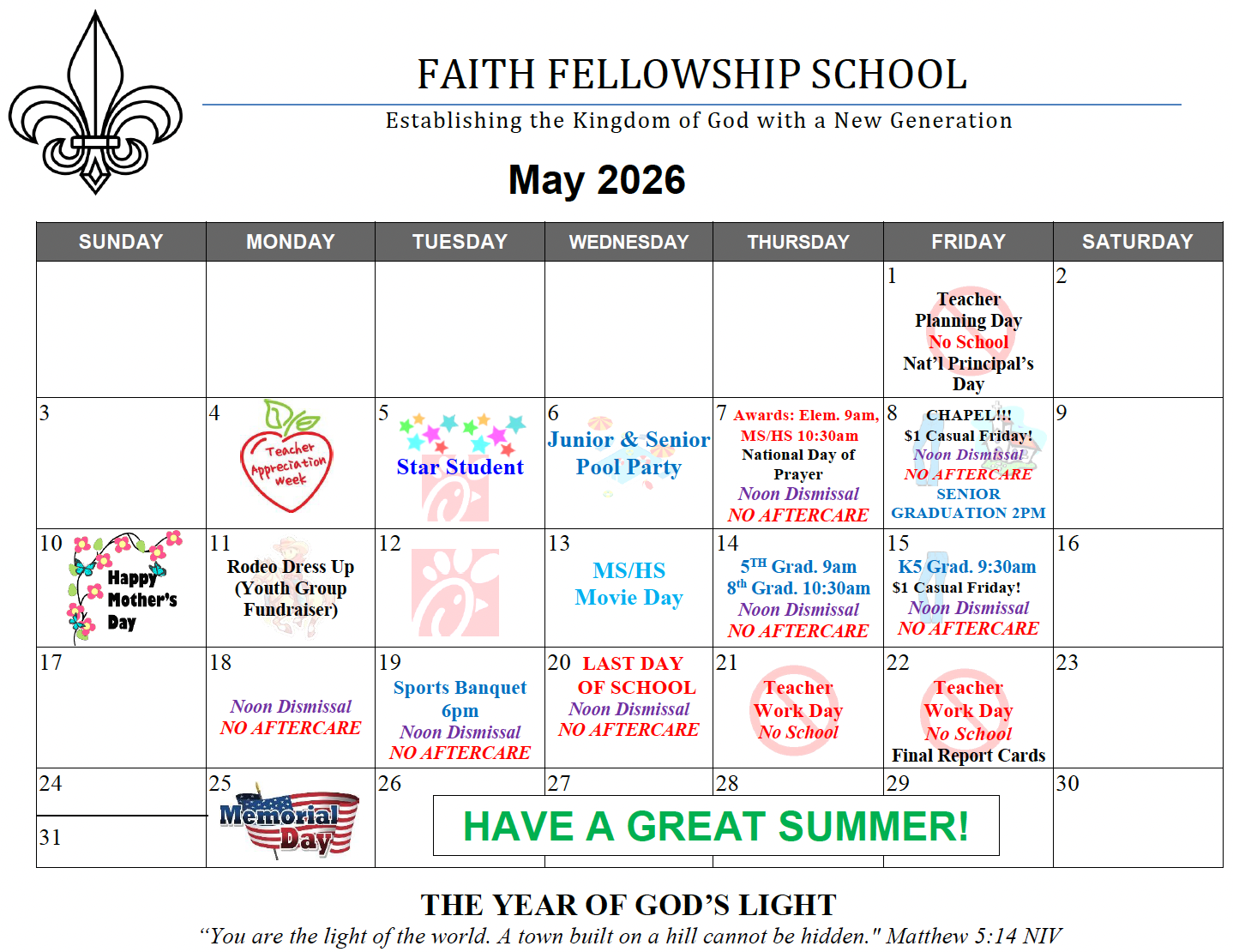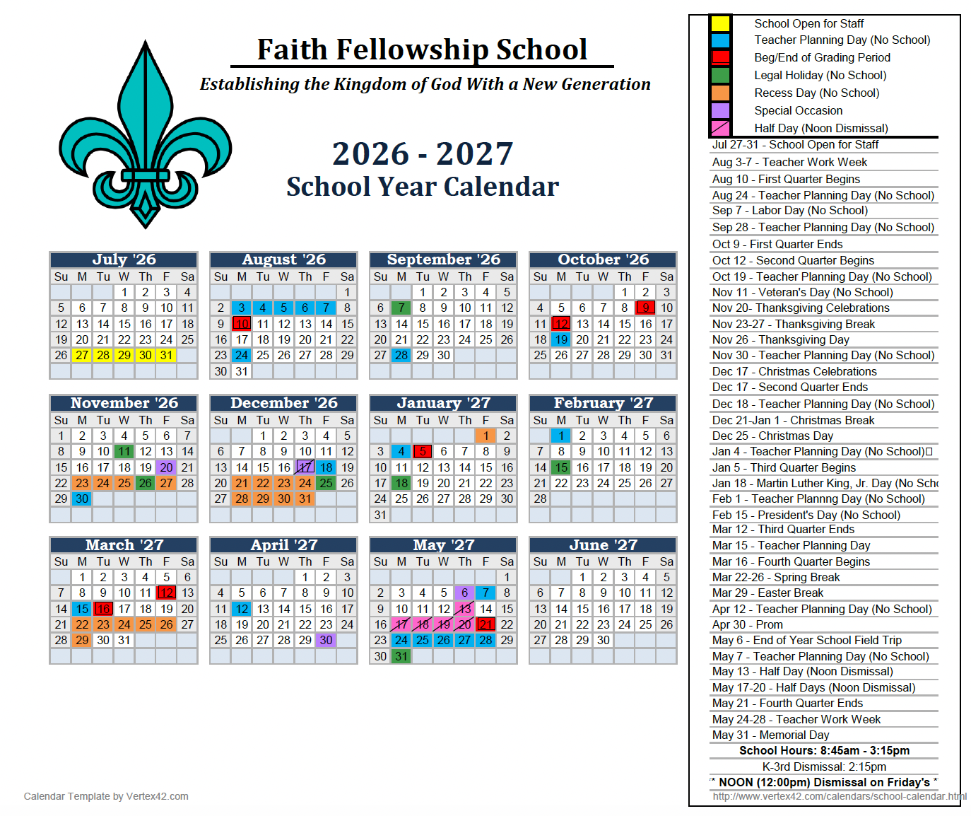 School Calendar (Printable)